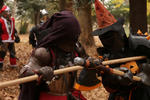 3. 打撃を吸収できる甲冑、ヘヴィレザー製のカマイユcamail、兜のしころなど。カマイユやしころが喉頭や頸椎、第一胸椎に触れるようなら、0.25インチ (6mm)以上の厚みの独立気泡フォームなどでパッドを当てる